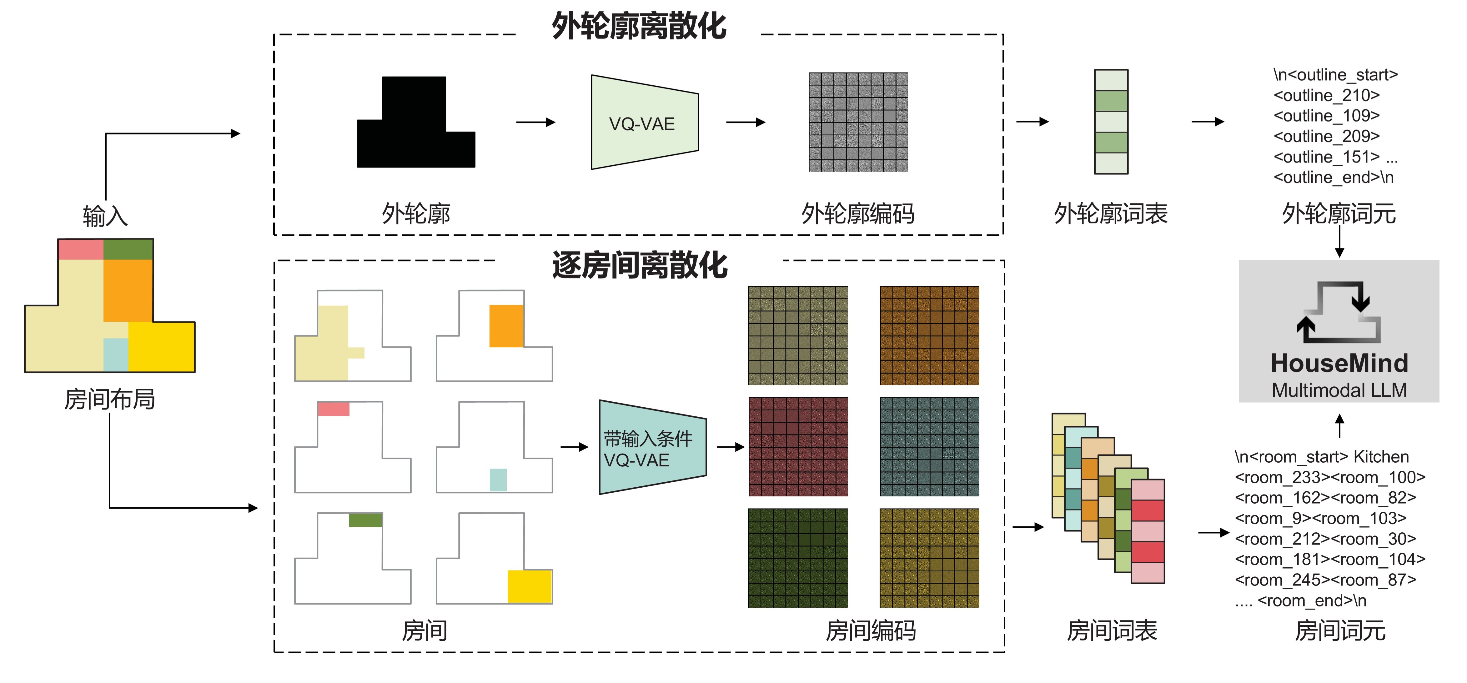 一种多模态大语言模型,通过离散房间实例token统一建筑平面图的理解、生成和编辑,实现可控且可解释的操作。